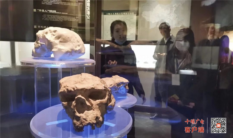 ▲“郧县人”头骨化石。
