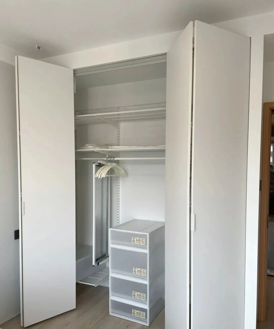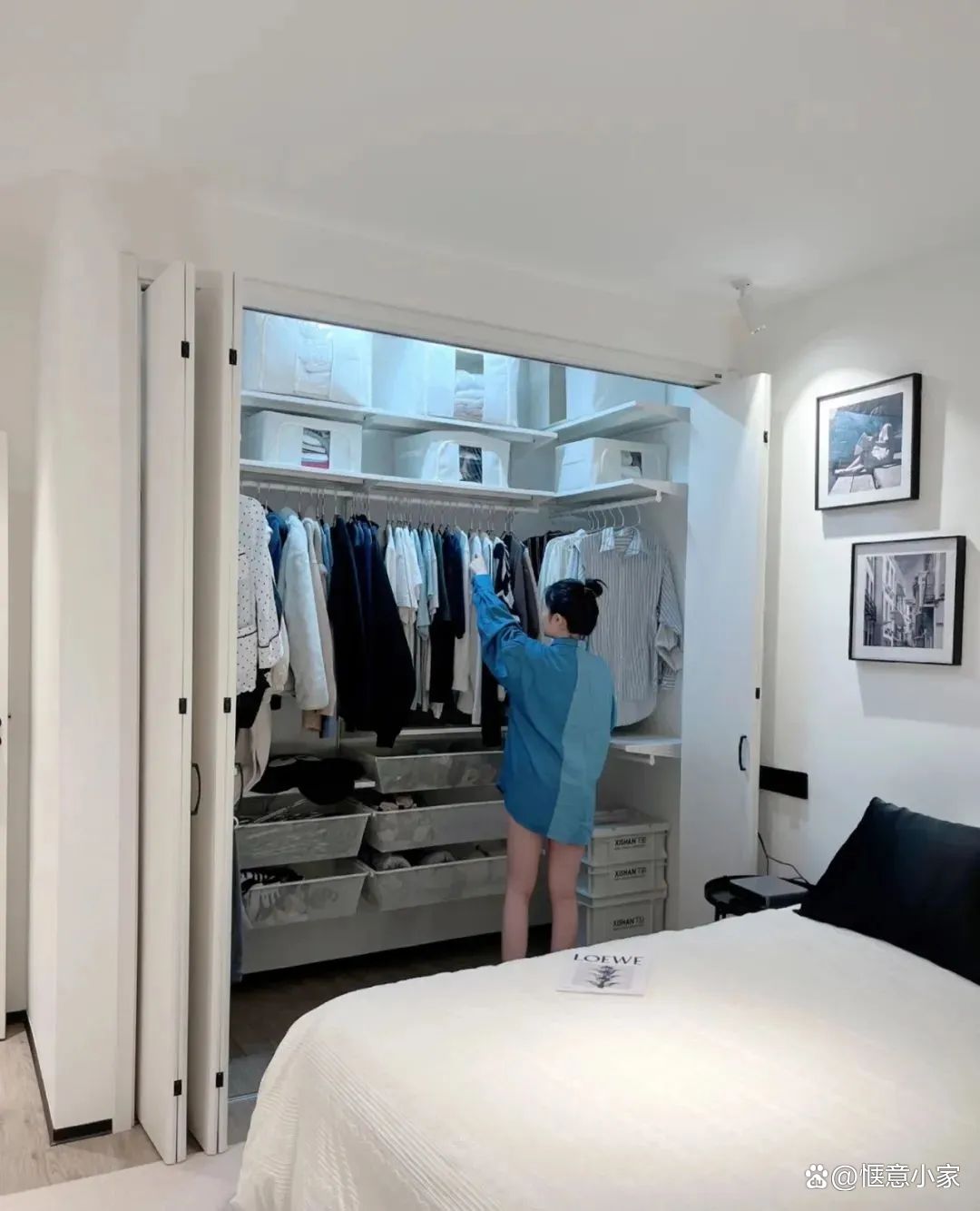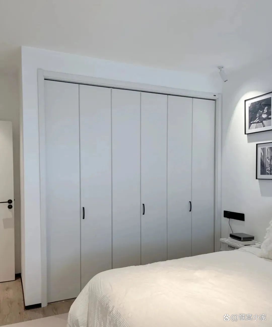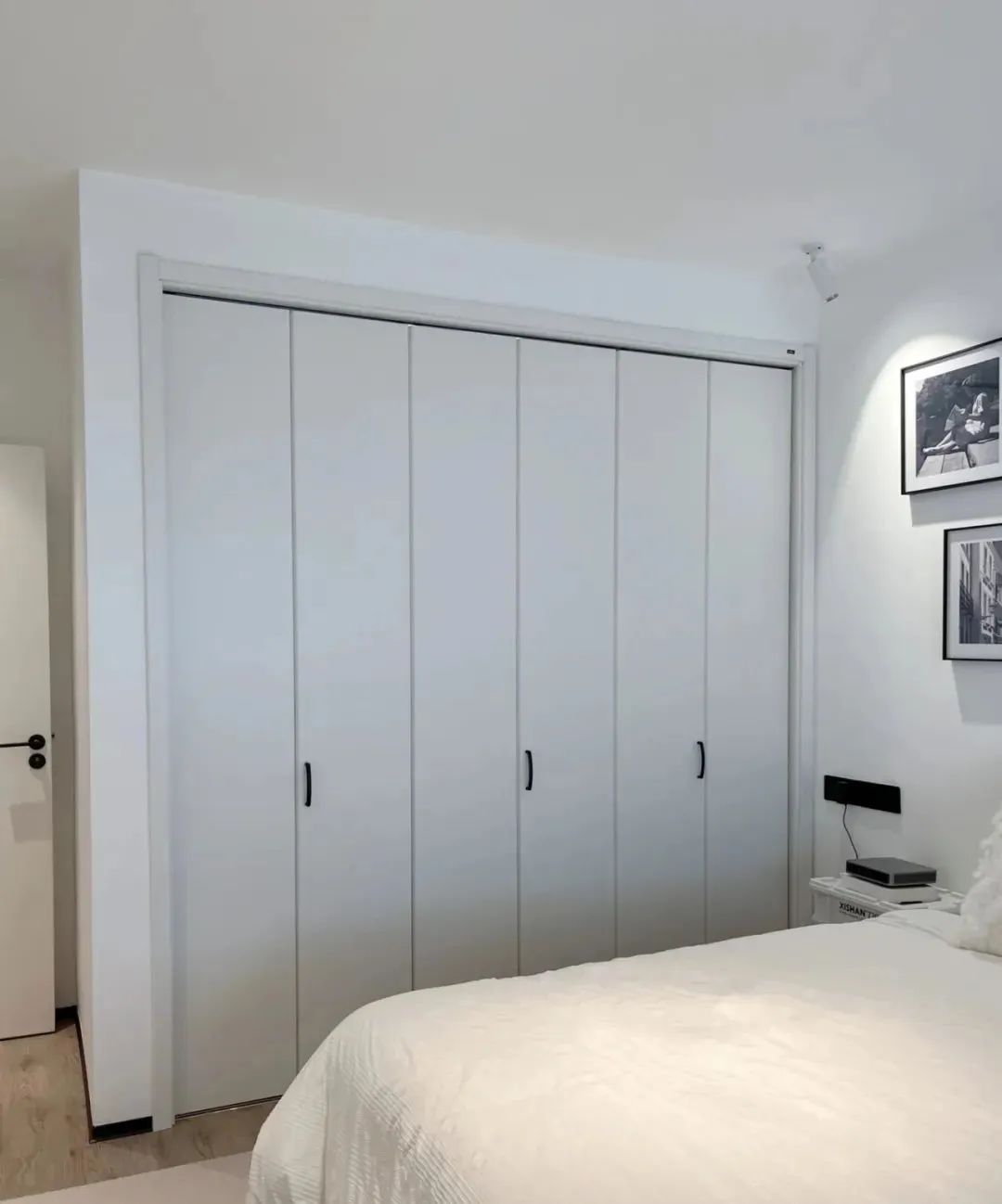 砌墙衣柜搭配折叠门,柜门可以全部打开,不占用空间,日常拿取也非常方便,柜门一关,空间整体性很强,颜值高又实用。