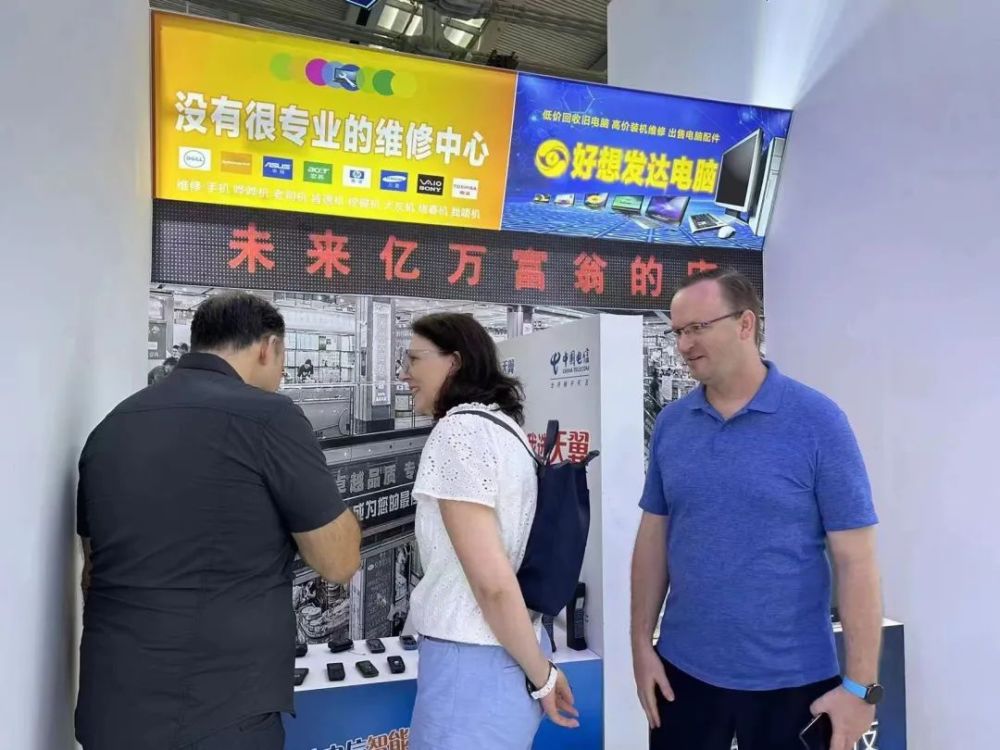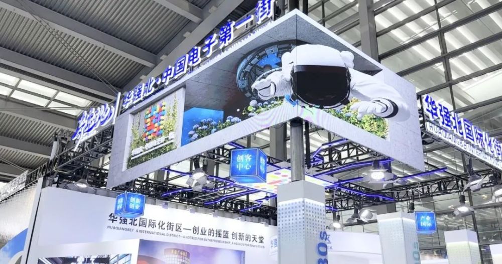 展区通过裸眼3D屏、电子芯片线路肌理轨迹等设计,融合科技与艺术,带来强烈的视觉冲击感,突出展示华强北“中国电子第一街”“创新创业大街”“亚洲最大的电子产品集散中心”品牌,传递“沟通与连接”全球人才的理念。