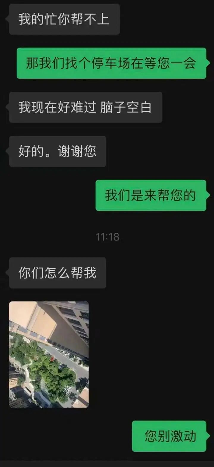 他赶忙报警求助,另一边还在耐心地跟他聊天,对他进行心理疏导,两个多小时的聊天,他一刻不敢松懈。