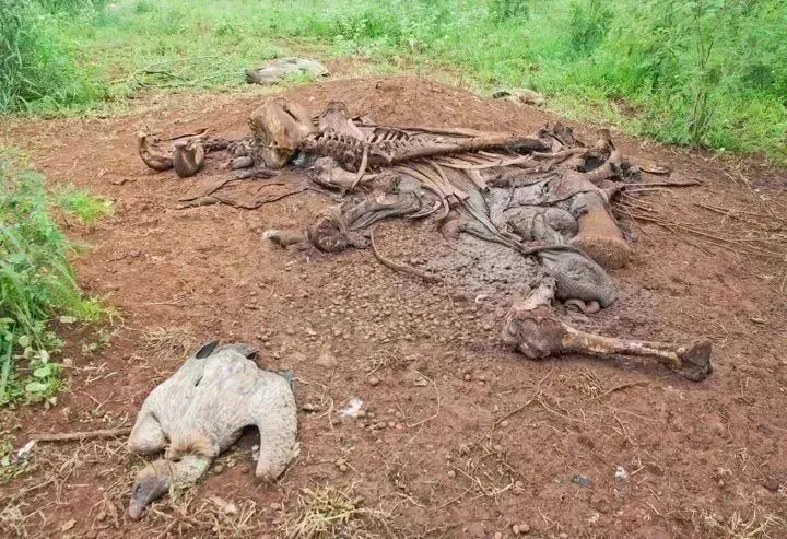 莫桑比克的一处大象盗猎现场,一次性发现了100多只被毒死的秃鹫,非洲象尸体已经高度腐烂,显然盗猎已经发生很久