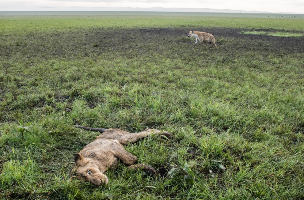被毒杀的狮子。用来毒杀狮子的有毒诱饵容易被秃鹫误食,被毒死后的狮子尸体也可能会吸引秃鹫,总而言之,毒杀事件的目标无论是谁,最终都可能影响到食腐性的秃鹫