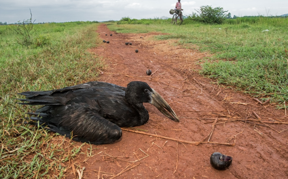 和人兽冲突中的二次中毒案例一样,在这种毒杀过程中,如果猎物没有被猎户及时取走,就有可能导致被尸体吸引而来的秃鹫中毒。更不用说在西非的一些地区,秃鹫本身就是丛林肉的猎捕对象,当然也就逃不过被毒杀的命运。