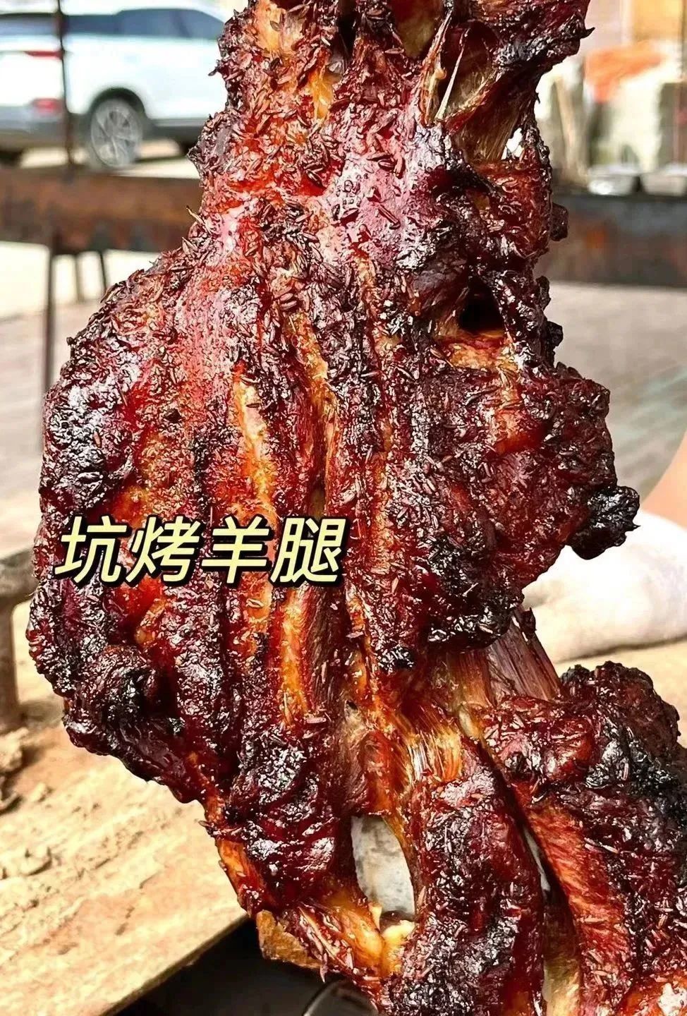 整只的羊腿坑烤,羊肉的香气一下子就上来了,三五个人整上一只,手撕羊肉,蘸着干料,老香了。