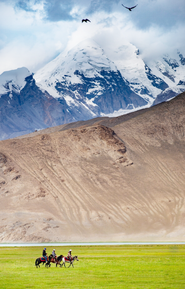 沿着中巴友谊公路前往“世界屋脊”之称的帕米尔高原,一路上草原、峡谷、湖泊、冰川在眼前次第舒展。