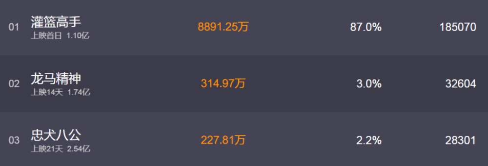 值得一提的是,《灌篮高手》上映首日,票房轻松破亿。