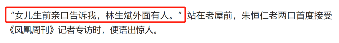 小贞父亲接受采访时坦言:女儿生前告诉我,林生斌外面有人。