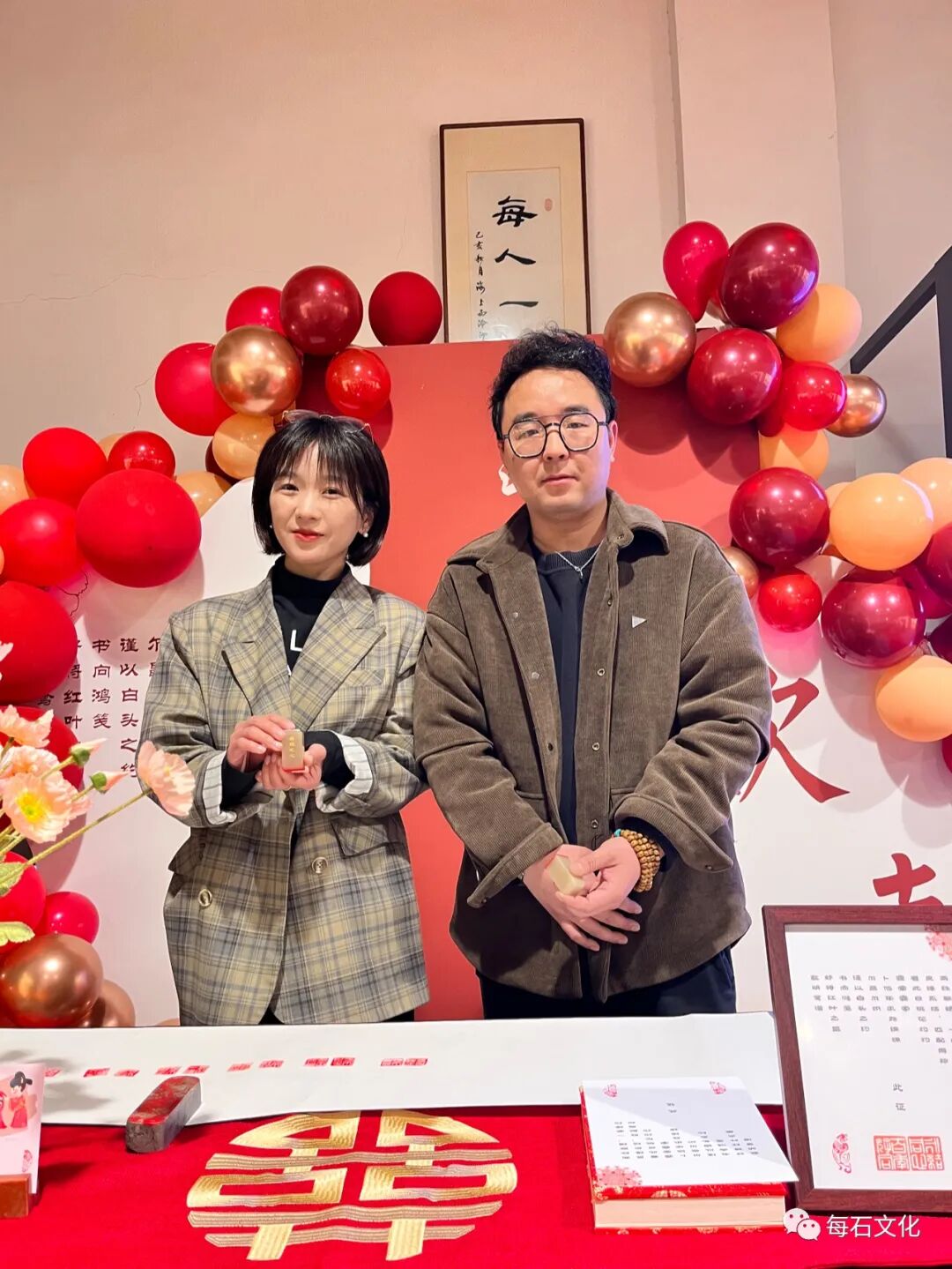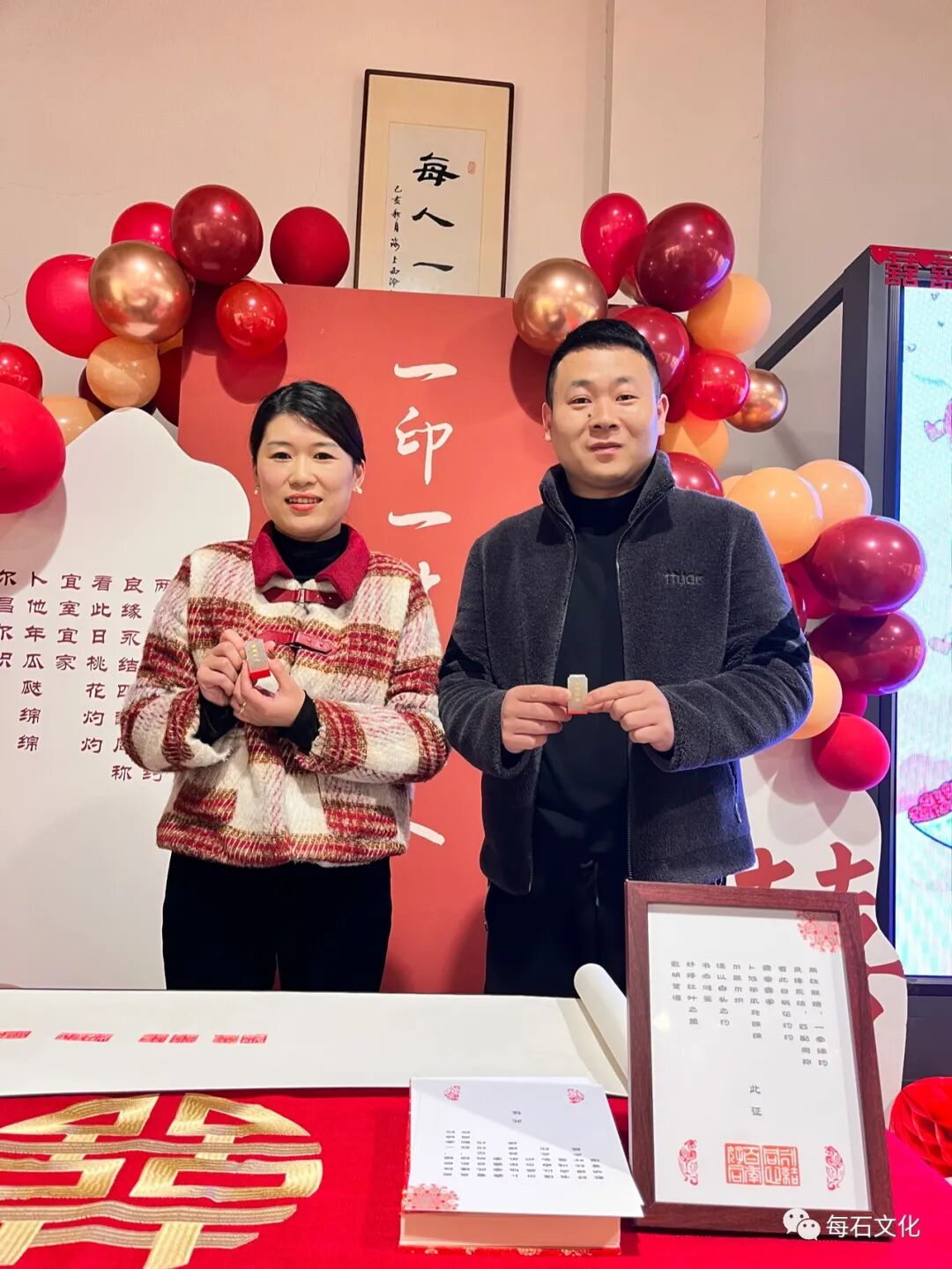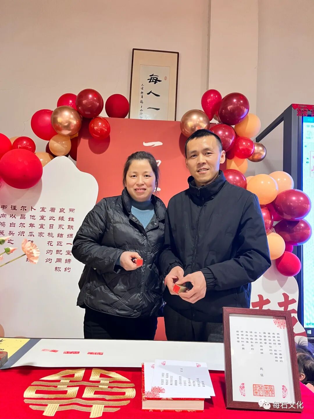 今天赋予这对喜印的意义是以爱的名义,我奉上我的心。婚姻除去生活的琐碎,更多的是两个人灵魂与精神的契合,不仅是一份爱情,也是一份承诺。当我们在婚礼上宣誓,自愿结为夫妻的那刻起,我们便将共同肩负起婚姻赋予我们的责任和义务。誓言,往往最能打动我们的心脾,钤印为信,一印一生一双人。