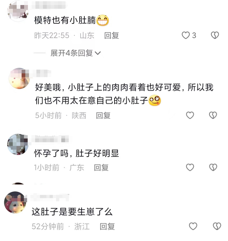 网友们看了孟广美的走秀视频后,不少人大赞她依旧风情万种,非常美。不过,也有人发现她腹部隆起明显,大家纷纷猜测她究竟是单纯发福,还是怀孕了。