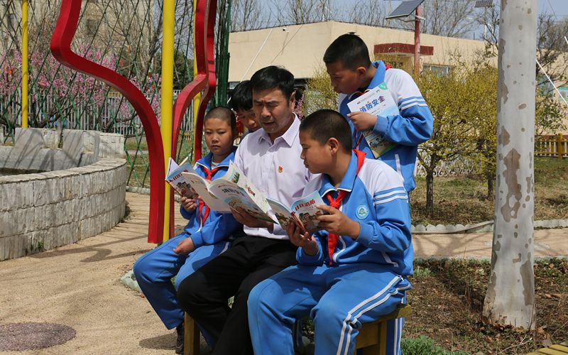 怀柔区宝山镇中心小学的学生们在看赠送的图书。怀柔区宝山镇供图