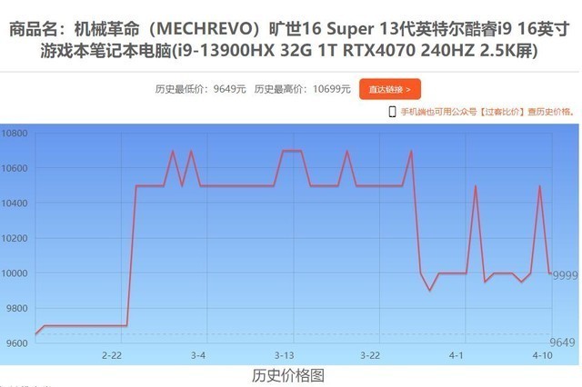 按照相关软件来查询来看,历史最低价为刚刚发售的节点为9649元,当前预购价格为9999元,可以明显看到比刚刚上市预售期的价格要稍稍贵一些,按照往年618大促时价格探底的定律,在5月20日618大促开启时,价格大概率会探到9649元的最低价,以现在仅有一个月左右的时间来看建议等到618大促开启时再出手。