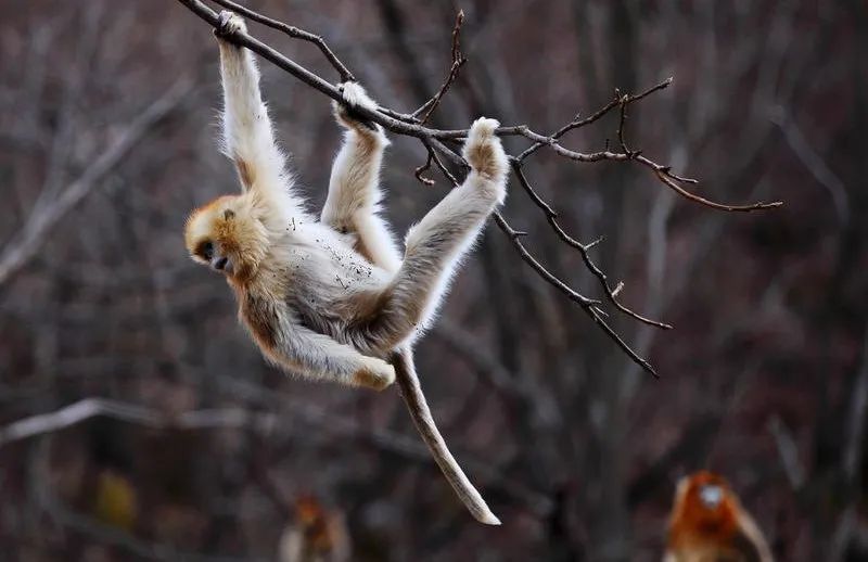 金丝猴属于国家一级保护动物,老曹这帮猢狲自恃人们不敢动它们,便时常走出深沟,到村子附近旅旅游,打打牙祭,捎带回一些喜爱之物。村民们对来无影去无踪的猴子们奈何不得,打也不能打,捉也不能捉。王奶奶说:“这帮猴崽子跟她的孙子王祥一样,有时候气得人牙根痒痒,恨不得扔锅里煮了,有时候又觉得可爱,见不得离不得呢!”
