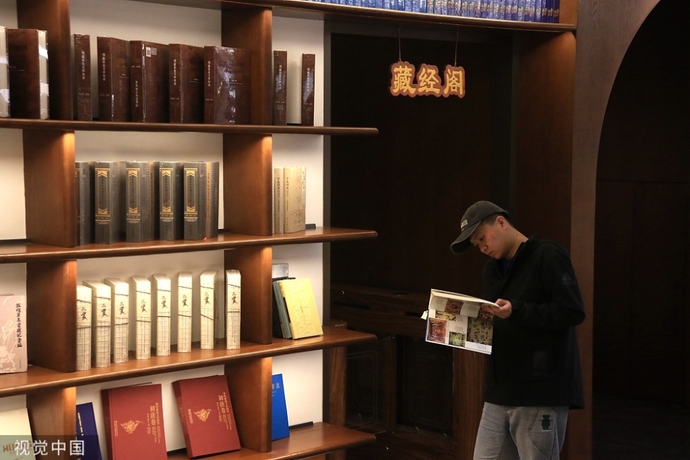 2023年4月23日,甘肃酒泉,读者在敦煌书局阅读图书。(视觉中国)