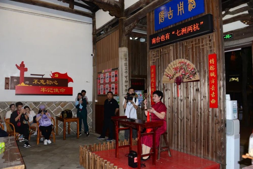 “二十大精神放光芒,党政军民心花放;同心共筑中国梦,有力量。”当采访团媒体记者们走进大众茶馆、福州市非物质文化遗产展示馆,映入眼帘的便是巾帼志愿者们声情并茂地用福州评话、伬唱宣讲着党的二十大精神。