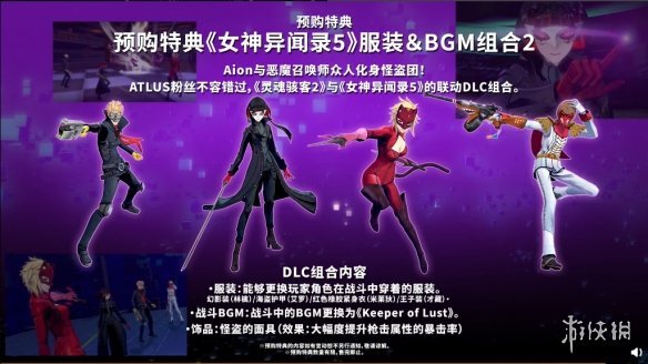 《灵魂骇客2》预购特典内容为与《女神异闻录5》联动的服装与战斗BGM《Keeper of Lust》,饰品「怪盗的面具」将获得大幅提升枪击属性的暴击率的效果。喜欢P5的玩家可以了解一下本作。