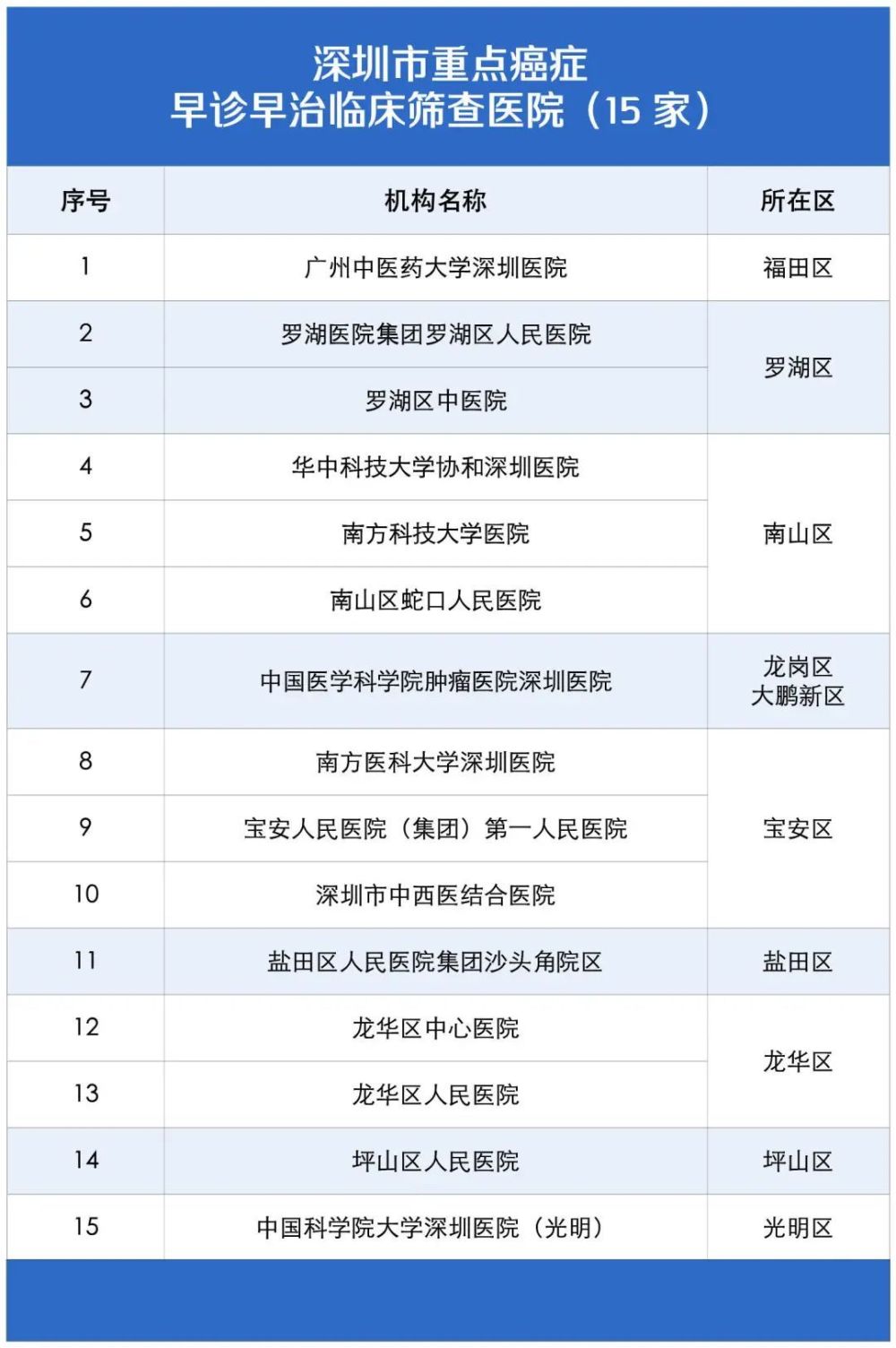 自2016年起,国家癌症中心已推动“城市癌症早诊早治”项目在深圳落地,针对我国最高发的“重点癌症”——肺癌、肝癌、上消化道癌、大肠癌、乳腺癌,为居民开放一定数量的免费筛查名额。