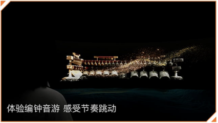 在聆听以编钟音色敲响的《天涯明月刀》游戏音乐的同时,沉浸式的感受由青铜颜色及纹理打造声纹波型光影效果,极致的视听享受。你还可以进行“吉金为铜”的光影体感互动,挥动手臂拂去青铜上的锈迹。