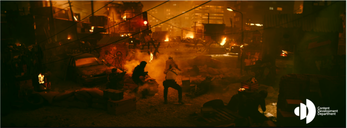 VP虚拟制作,就是将游戏引擎中的实时渲染技术呈现在LED屏幕中,让场景可以跟随摄像机的角度、位置、焦段实时变化。