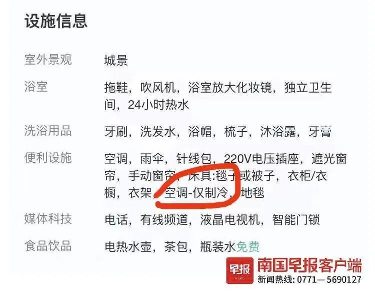▲酒店在网上登记的信息显示,房间空调能制冷。受访者供图