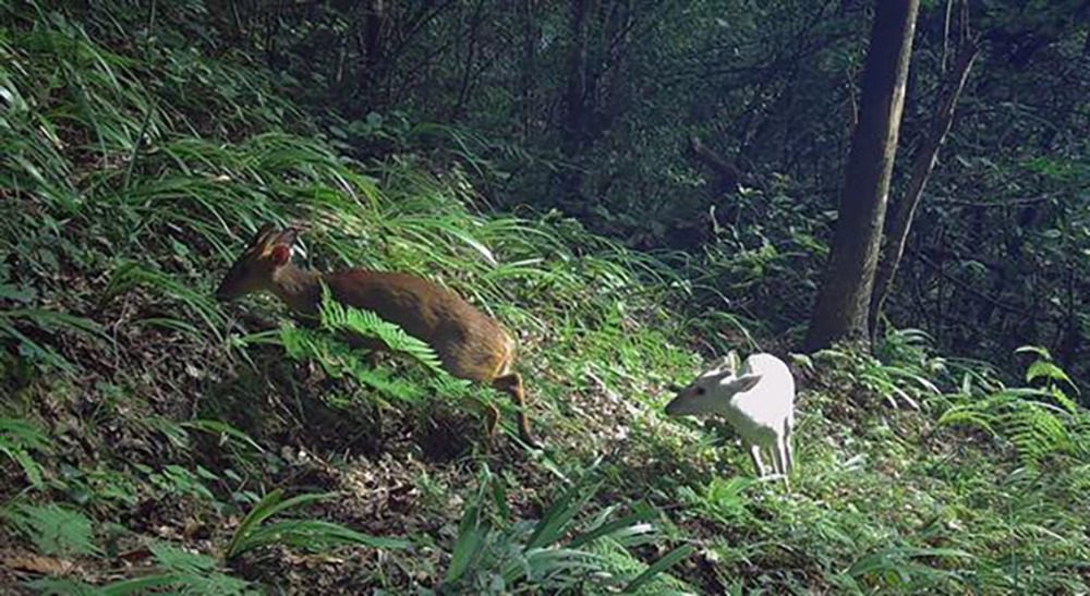 4 月 17 日,湖北省巴东县金丝猴国家级自然保护区工作人员在红外相机监测数据中有了罕见的发现:只见一只寻常的黄色麂子跟一只纯白的麂子结伴在林中空地行走。它们当时正在觅食,啃几口草就赶紧四处张望防止被“gank”,警惕性很强。但它们可发现不了红外相机这种“死物”,这罕见的场景就这么被记录了下来。