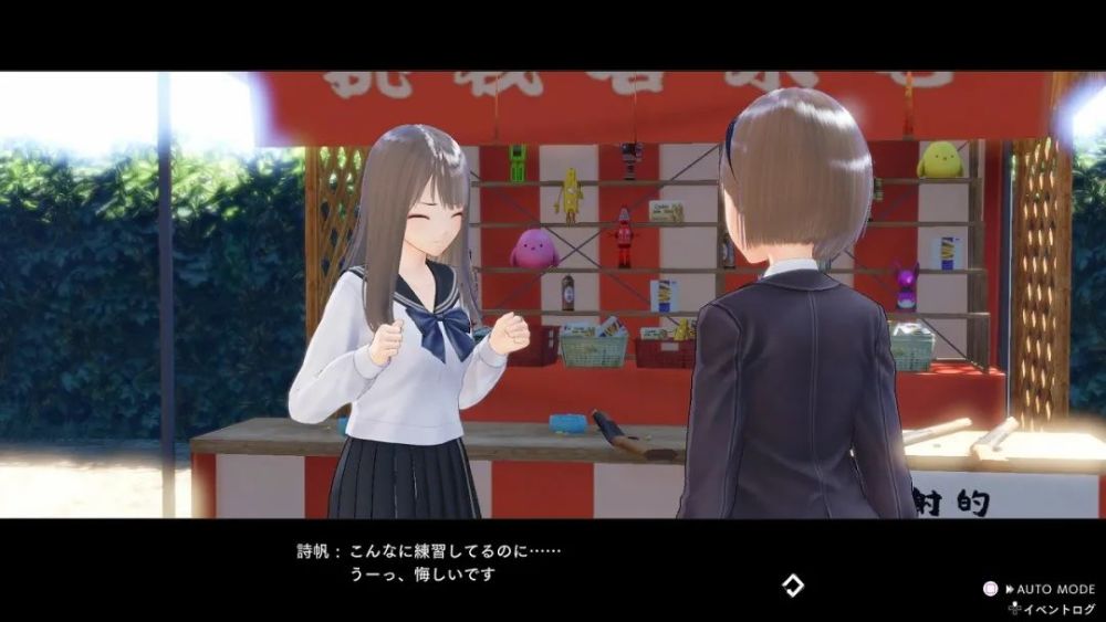 与诗帆约会的一幕。在射击游戏中脱靶的她也会展现与平时不一样的可爱孩子气。