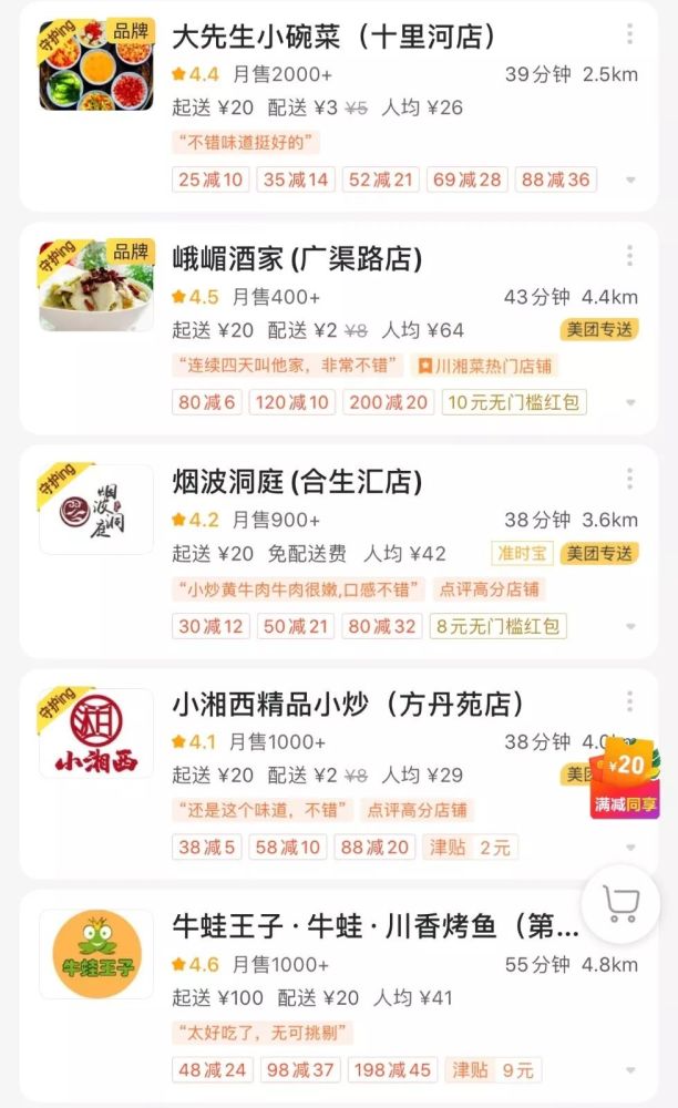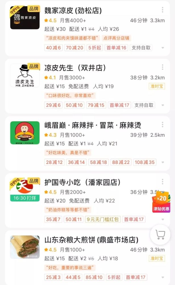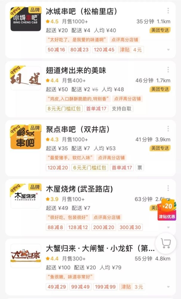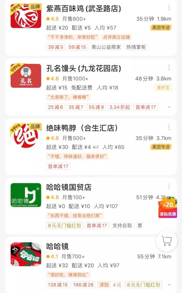 仍在营业的外卖清单