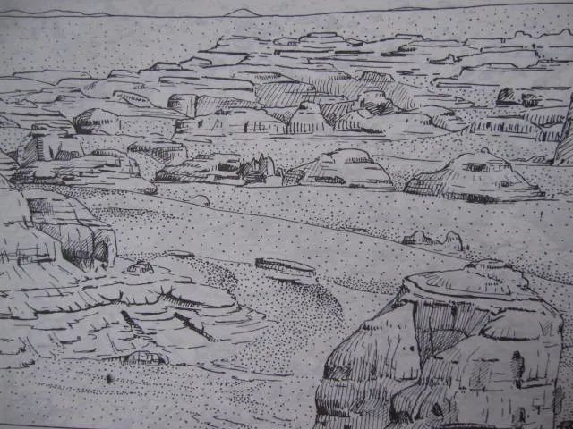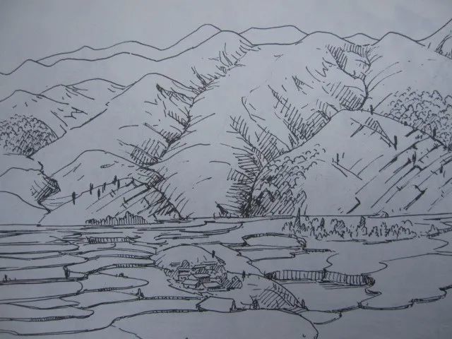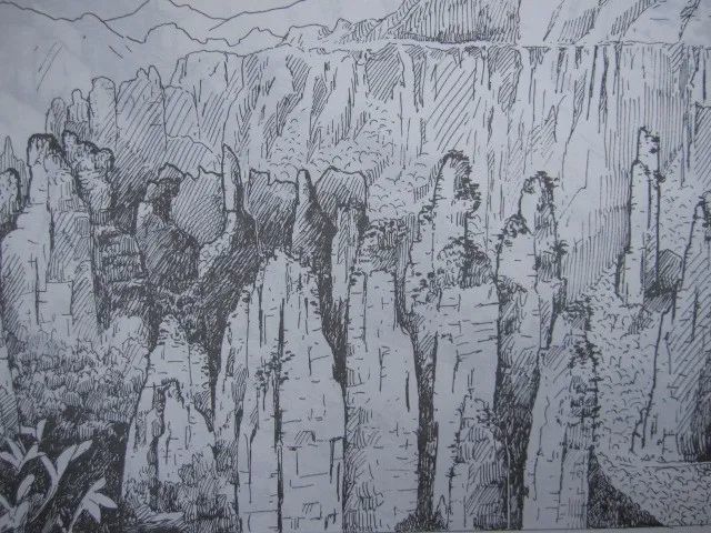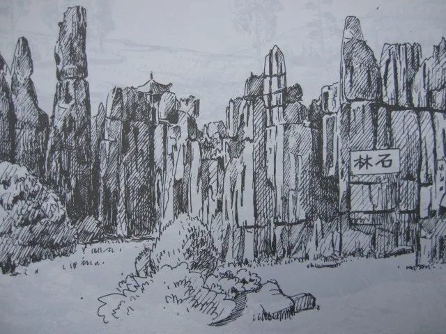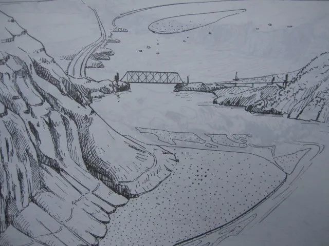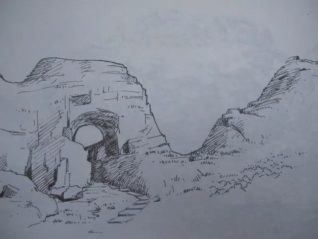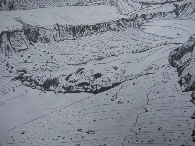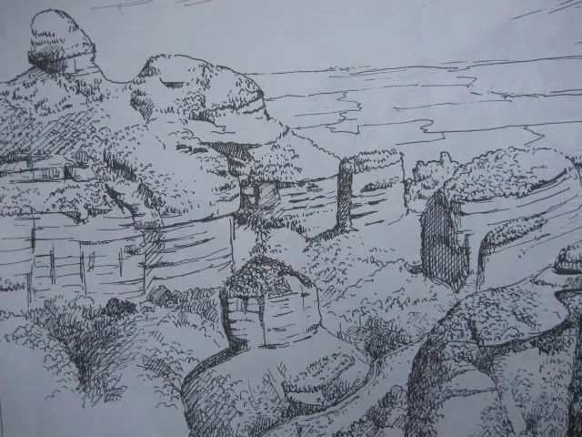地质景观速写,是以野外地质物象为对象,用速写技法描绘出地质客观实体的空间形态及相互关系。