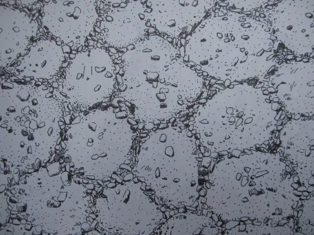 石环地貌,又叫石多边形,是一种石质构造土。在冰缘地区,饱含水分的颗粒大小混杂的松散堆积物,当地表冻结时,沙石、砾石一起被抬举,砾石间的空隙被一些细颗粒所填充,气温上升,表层融化时,砾石由于下部空隙被填充,不能再回到原来位置,这种冰融作用反复进行,砾石又被抬举到表面,形成了垂直方向的分选,在重力作用和融冰泥流作用参与下就形成了多边形或石环的形态。匠心地理公众号整理 我国昆仑山——克喇昆仑山,海拔大都在5500米以上,太阳辐射强烈,土壤或岩层中冻结的冰,在冻融作用等影响下,形成了这种富有装饰特征的石环,直径0.5-2米,宛如人工装饰的园林小径,十分美观。