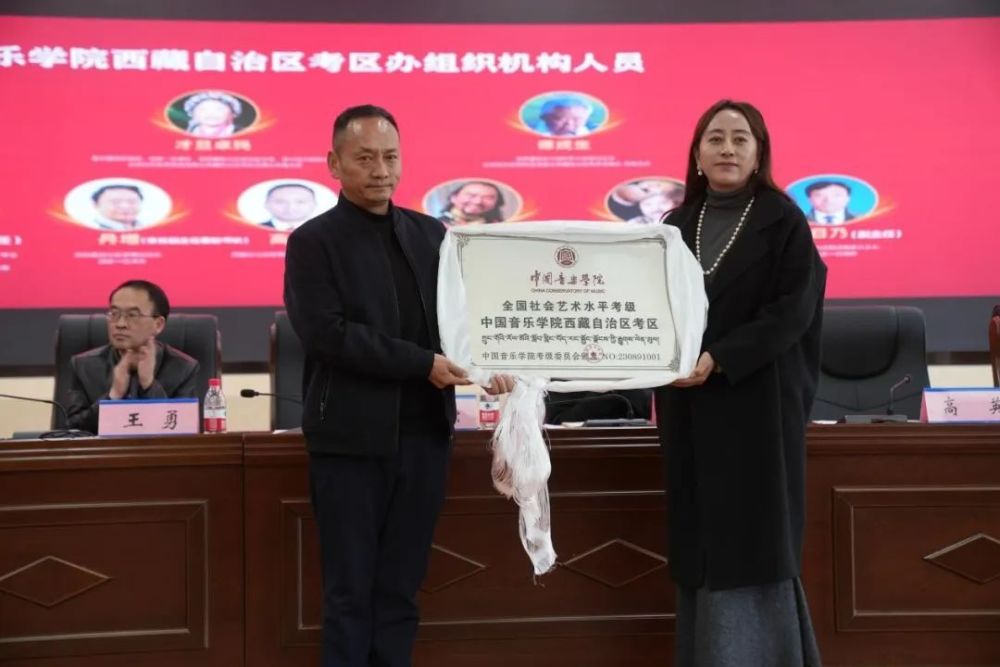 中国音乐学院于1964年建立,在培养高层次民族音乐人才方面取得突出成就,使民族音乐发扬光大、走向世界作出重大贡献,素有“中国民族音乐的殿堂”“民族音乐家的摇篮”的美誉,为更好的帮助培养西藏各地市文艺人才和提高我区民族音乐艺术教育、美育教育以及全区青少年提高艺术兴趣、音乐特长,中国音乐学院西藏自治区考区七地市考点统一呈递挂牌仪式和2023年中国音乐学院西藏自治区考区考级正式启动。
