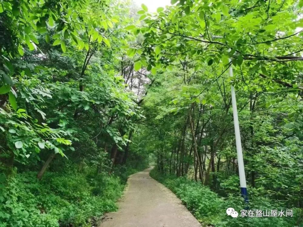 继续乘车从张家湾梁顶环绕下到槐树沟,东西走向的环山公路和南北走向的民主村公路在槐树沟相交。民主村名是1958年政府所改,曾经叫过闹庄里,如果改叫槐树沟村,更能给游客留下想象的余地,更能和秦岭山水结缘,更有影响力和传播宣传空间。村名很新潮但历史很悠久,这里是周文王训练盩师,发展农业生产的重要根据地之一,与早周有关联的地名有”擂鼓台、“寻锣沟”、“八卦台”、“凤冠山”等均在民主村境内,而擂鼓台的东边边就和民主村连畔种地。民主村有两大让你念念不忘和值得观赏的的地方,一是森林,二是百鸟。一踏进狭长的民主村沟道,给人一种自然、绿色、纯朴的美感,更有一种秀色可餐的诱惑。民主村就是一个被森林覆盖的村庄,徜徉在百亩洋槐树林绿色海洋里,你会享受到梦寐许久的森林浴,更能品味到了这里别具特质的绿色。绿的铺天盖地,绿的无边无际,完全令人目不暇接,却又使人急于投入它的怀抱。随便选一条村子里清幽曲折的小径而行,都呈现出草木葱茂的景象,满目绿意,那绿色浓郁而张扬,让你不禁迷了双眼,染了周身,醉了心智,洗了灵魂。民主村的绿色是有层次的立体的,富有张力,绿得疯狂,绿得入心,它不但染绿了大地还染绿了空气和苍穹,雅称“竹峪绿谷”。无处不在的绿色让人感受到一种沁人心脾的愉悦,成为名副其实的“康养福地”。我们就近选择环山公路旁边的槐树沟走一走,一路上高大的树木,舒展的枝叶蓊郁葳蕤,在蜿蜒的道路的上空合围成碧绿的拱廊,徜徉在槐树沟这个植物王国,才知道什么是被绿树净化了的空气,什么是被绿水浸透了的负氧离子,什么是完整的原始的绿色生态系统。在绿色的森林“氧吧”里行走,吮吸着含有营养素的空气,沐浴着新潮的“森林浴”,濯肺、养心,清新的空气瞬间置换了肺腑垃圾,清空了心头的忧愁和烦恼,吐陈纳新,有重生的感觉。路过一户人家庭院,除了盖过屋顶的树木外,门墙边还种了一架凌霄,虬曲的藤干,深绿的叶,橙红的花,纷纷披披,几乎掩尽了一整个庭院。