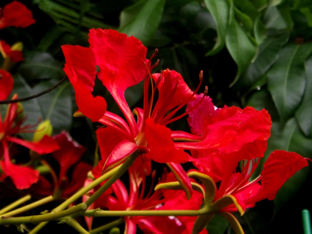 获悉:凤凰花,又名红花楹、火树,苏木科落叶大乔木,热带观赏花树,原产马达加斯加。树干高达20米,树冠半圆形,五月开花至夏末,花五瓣,花大美丽,呈鲜红色带黄晕。