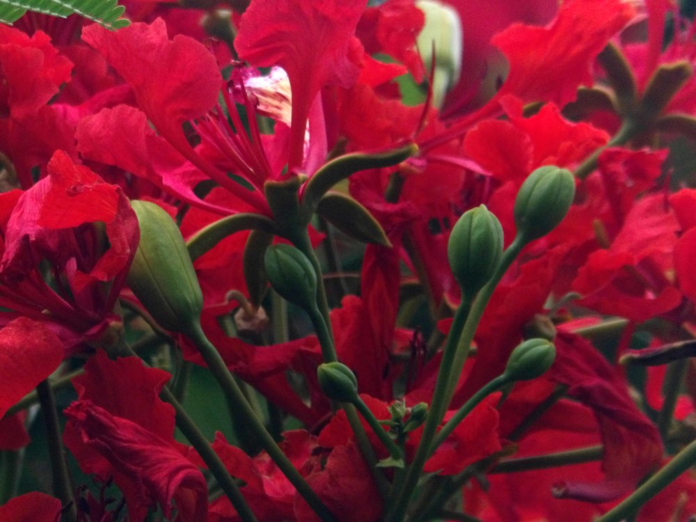 “凤凰花花语:离别、思念、火热青春。凤凰花即凤凰木的花。
