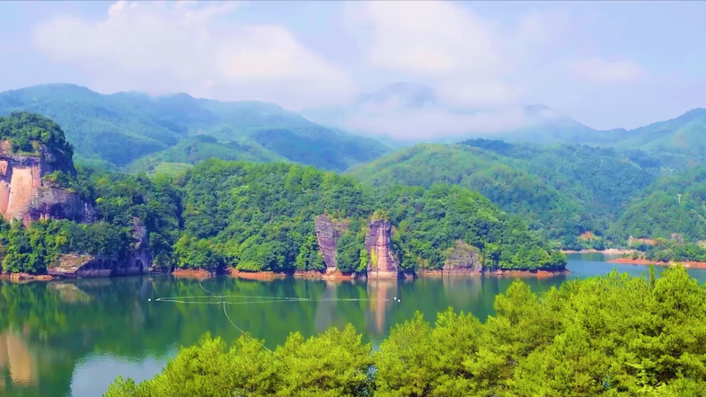 以“水上丹霞”为特色的泰宁丹霞和大金湖是碧绿,与浩瀚湖水相结合的风景名胜区丹峰竞秀、泉瀑争奇,被称为“天下第一湖山”,隔壁的寨下大峡谷内壁立千仞,翠竹丛生,像一幅流动的山水水墨画。