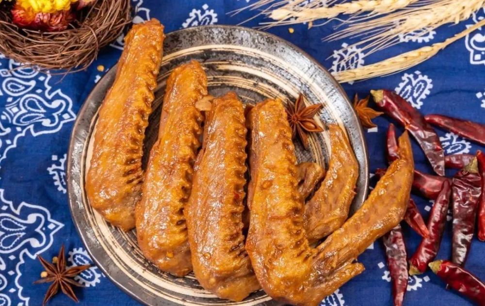 三元莘口熏鸭翅、鸭脖,熏鸭技术传承已超百年历史。熏鸭制作需经过浸、腌、烫、熏等多道工序,成品色泽金黄油亮、皮脂厚润、肉质鲜嫩、气味芳香,是当地人日常下酒的常见美食之一。