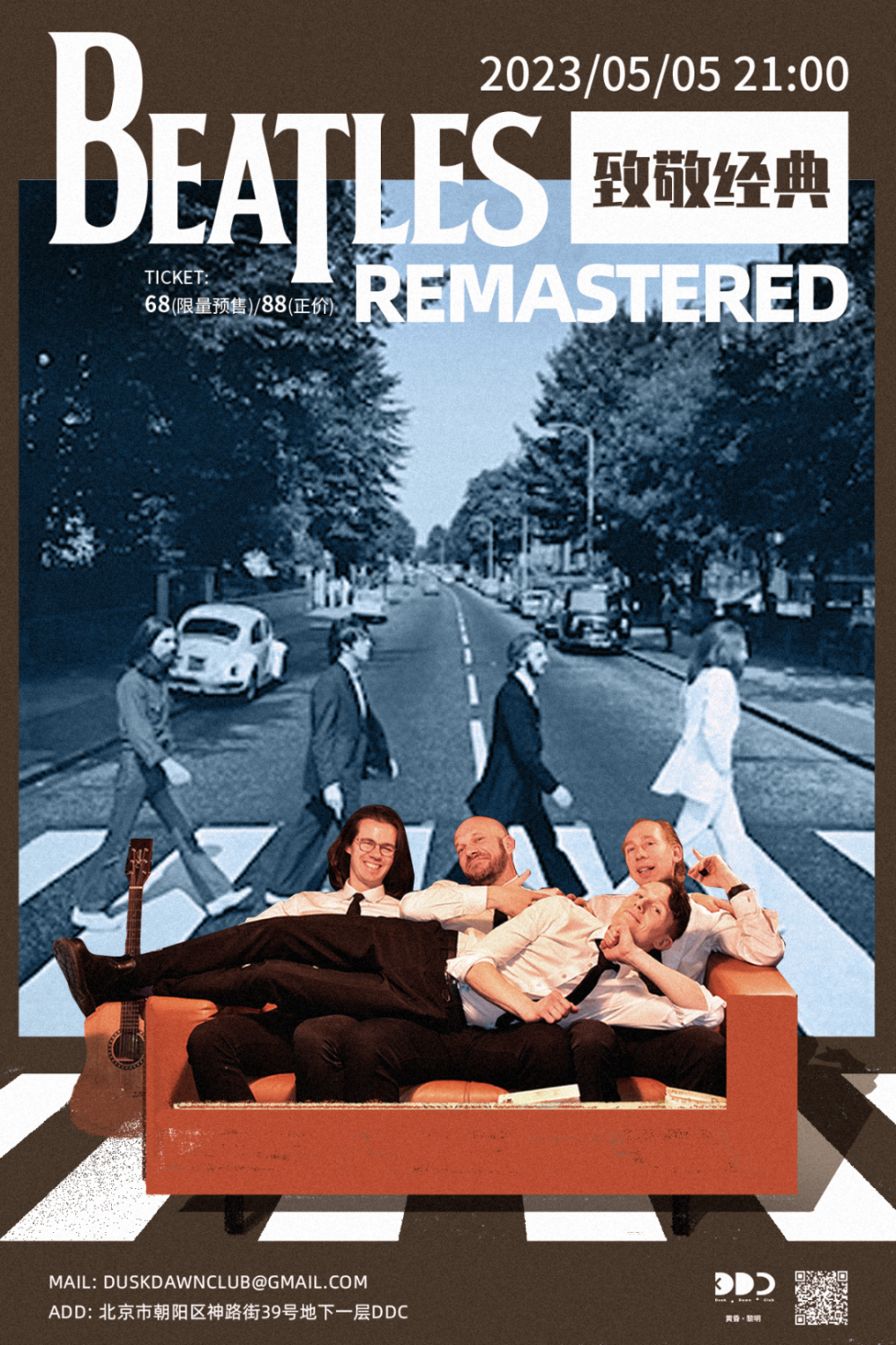 Beatles Remastered 乐队已有三年演出经验,在北京现场音乐的场景中备受好评。在过去的几十年,北京不乏翻唱披头士的乐队,而我们的鼓手Ringo Gregory就是这蓬勃生态中的核心人物。乐队其他成员同样对Beatles的音乐有特殊深厚的感情。