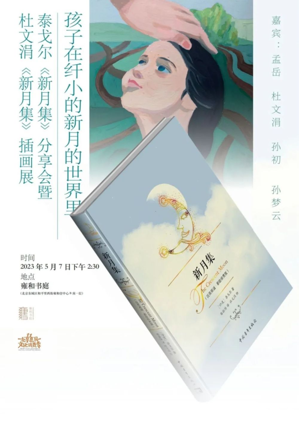 5月7日是诗人泰戈尔的诞辰,正逢中国青年出版社《新月集》(汉英双语? 彩绘珍赏版)出版,我们特别举办“孩子在纤小的新月的世界里 一一泰戈尔《新月集》分享会暨杜文涓《新月集》插画展”。