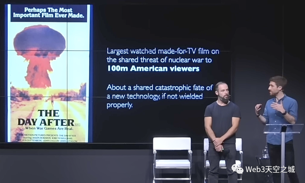 他们播出了这是有史以来观看量最大的电视电影。一亿美国人看到了;23年后,1987年,他们将其播放给所有的俄罗斯人,这有助于达成对(如果进行全面核战争后)我们人类命运的共同理解。