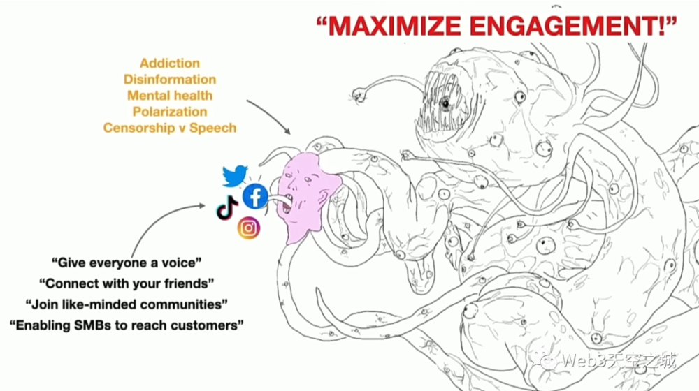 值得注意的是,最大限度提高(用户)参与度实际上改写了我们社会的各个方面,因为它将我们社会的其他核心方面纳入其触手之中,然后占据和掌控它们。