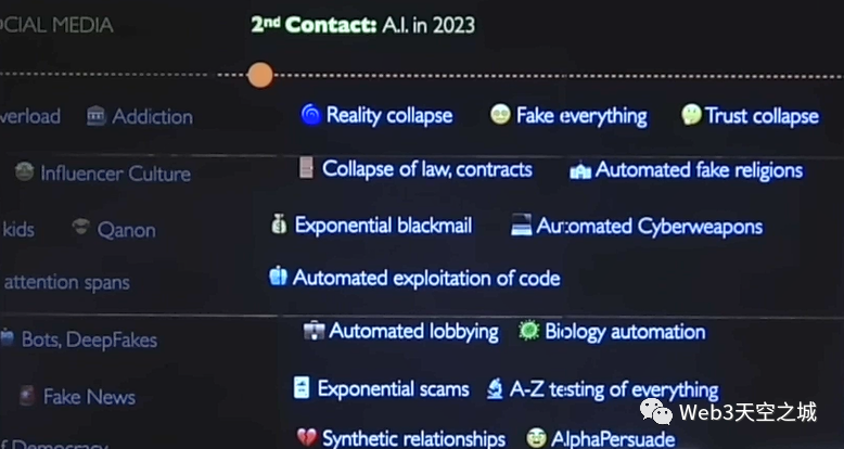 尽管,这种相对简单的技术,相当于人类对人工智能的第一次接触, 已经足够破坏人类,造成信息过载,成瘾、厌世滚动、儿童性别化、注意力持续时间缩短、极化、假新闻和民主的崩溃;但是,没有人希望让这些事情发生。
