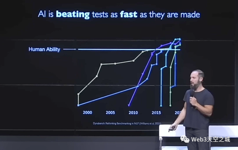 我认为,因为人工智能是一个如此抽象的东西,它影响着如此多的事情,而且没有以往生活中身体感觉的基本隐喻,所以很难完全理解它有多么变革性。所以,当我们说这次演讲是一个对一种范例性技术的范例性响应时,我们真正想要做的是,让你们所有人有一种更加直观的方式来体验我们即将迎来的指数曲线。