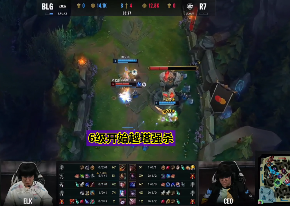 BLG与R7的这场比赛,狗子我感觉双方最大的差距,就出在下路,两局比赛,R7的下路都是从头到尾被BLG下路双人组给完爆,1级上线就开始打不过,早早就被打回家。
