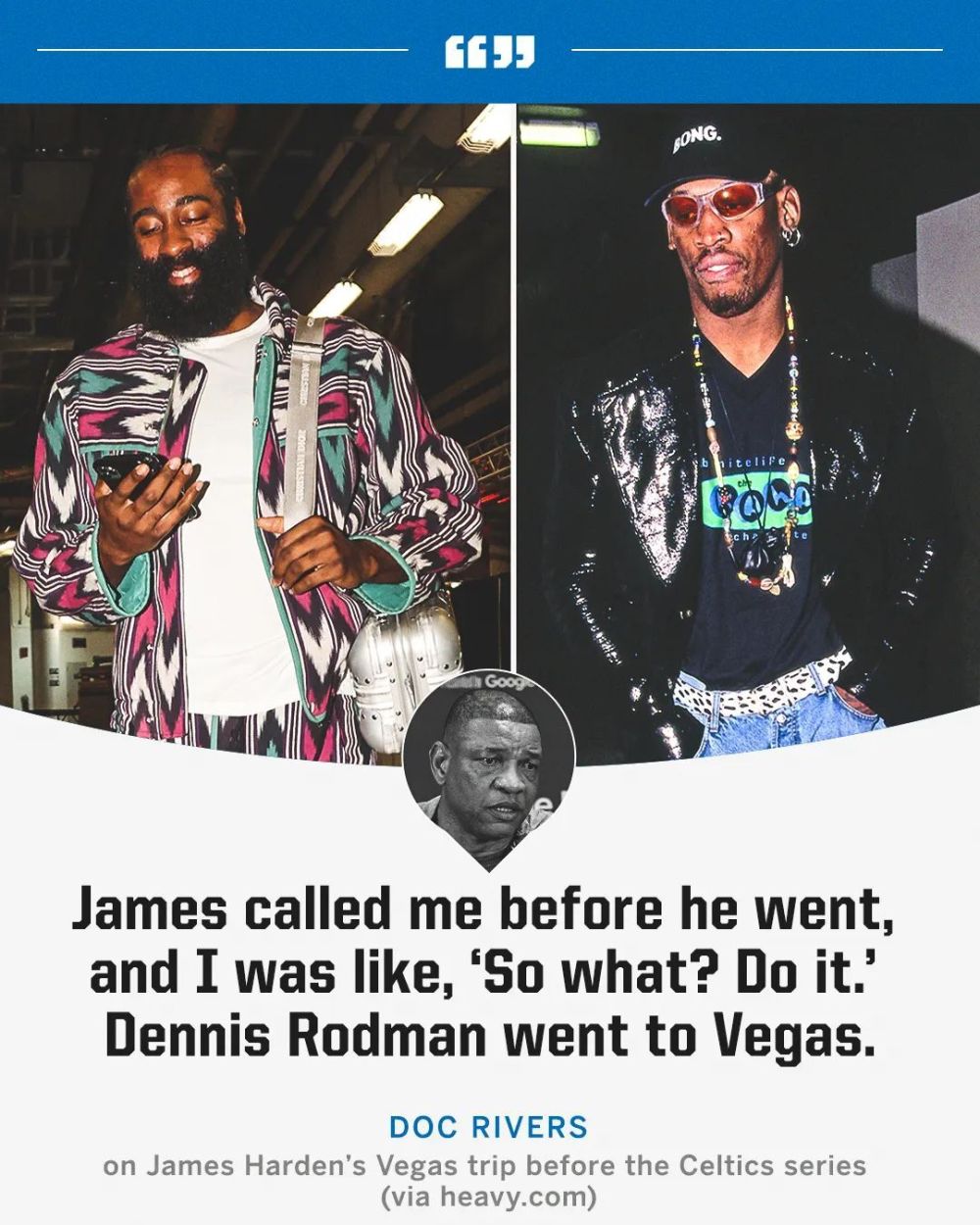这件事情发生在76人队结束首轮比赛之后,当时他们有难得的休息时间来等待凯尔特人队晋级。对此,里弗斯在采访的时候,被问到哈登这样安排有无问题,里弗斯这样说道:“这很有趣,哈登在去之前给我打电话了,我当时说’这怎么啦?去吧。’丹尼斯-罗德曼当年也去了拉斯维加斯。”