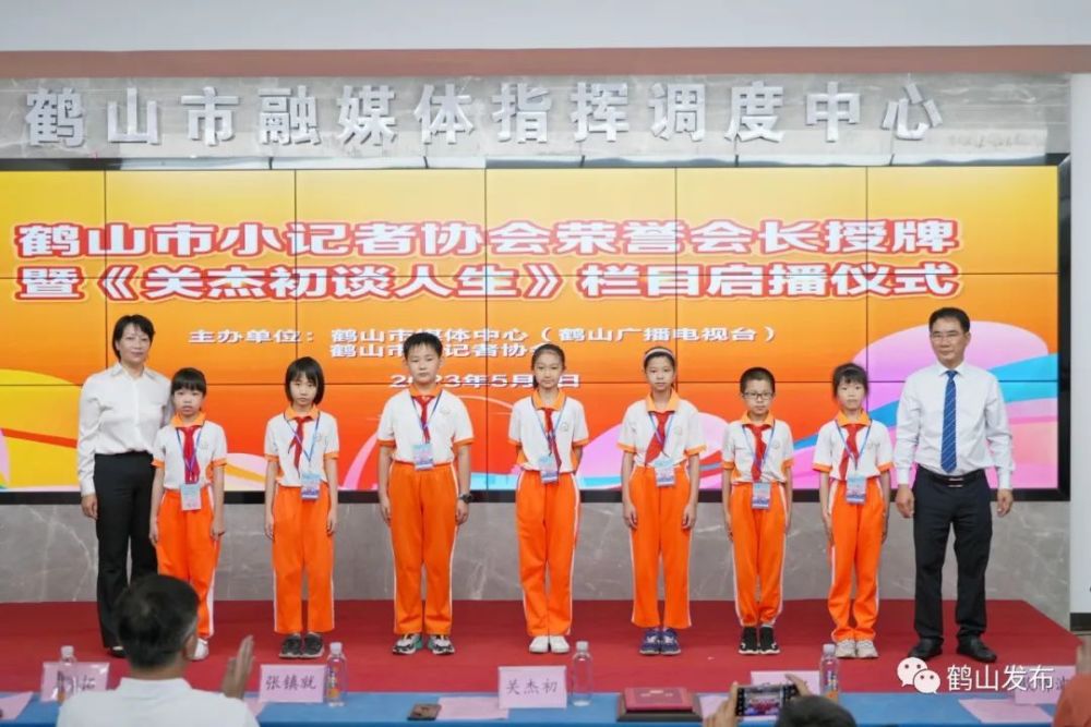 5月6日上午,鹤山市小记者协会荣誉会长授牌暨《关杰初谈人生》栏目启播仪式在市融媒体中心举行。中国红十字人道勋章获得者、源林投资(广东)有限公司董事长关杰初先生、吴绮兰女士受聘担任鹤山市小记者协会荣誉会长,全媒体直播栏目《关杰初谈人生》正式启播。
