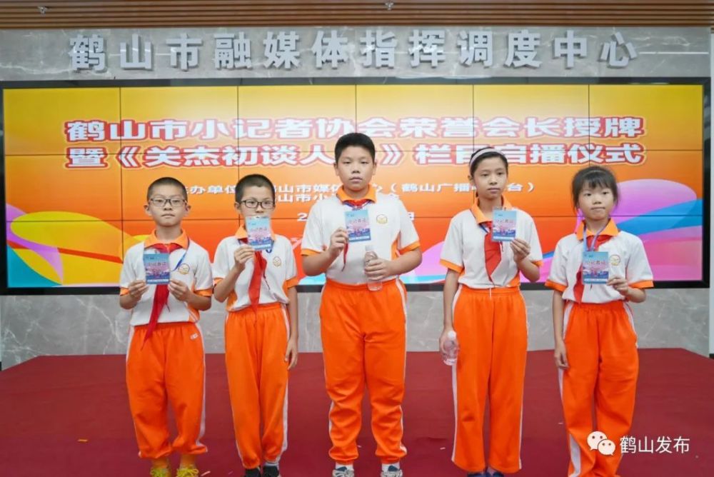 为支持鹤山市小记者协会繁荣、高质量发展,关杰初、吴绮兰会长特向小记者协会捐赠善款100万元,活动进行了支票交接。同时,两位会长为协会小记者代表颁发“小记者证”。