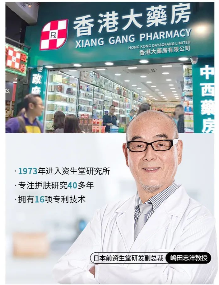 1、香港大药房??日本前资生堂研发副总裁嵨田忠洋教授联合研发,实力保障;