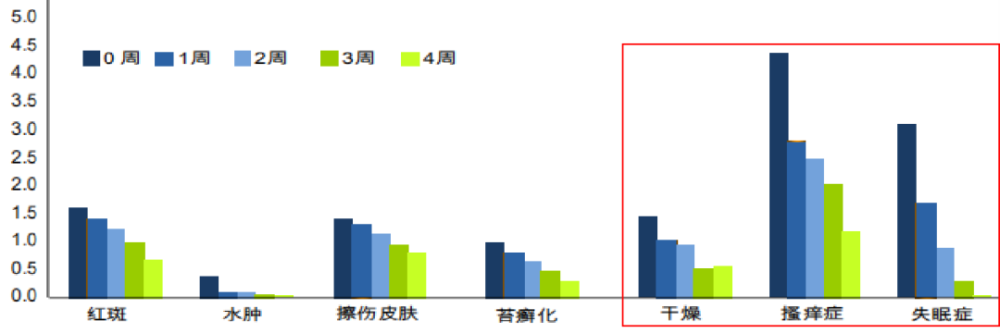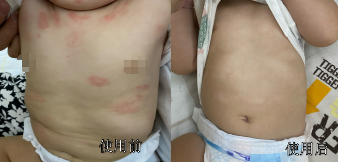 使用1周后,皮肤的干燥、瘙痒明显减轻,晚上睡眠状况也变得更安稳;连续使用4周后,宝宝的红斑、水肿、苔藓症状都有了明显的改善。