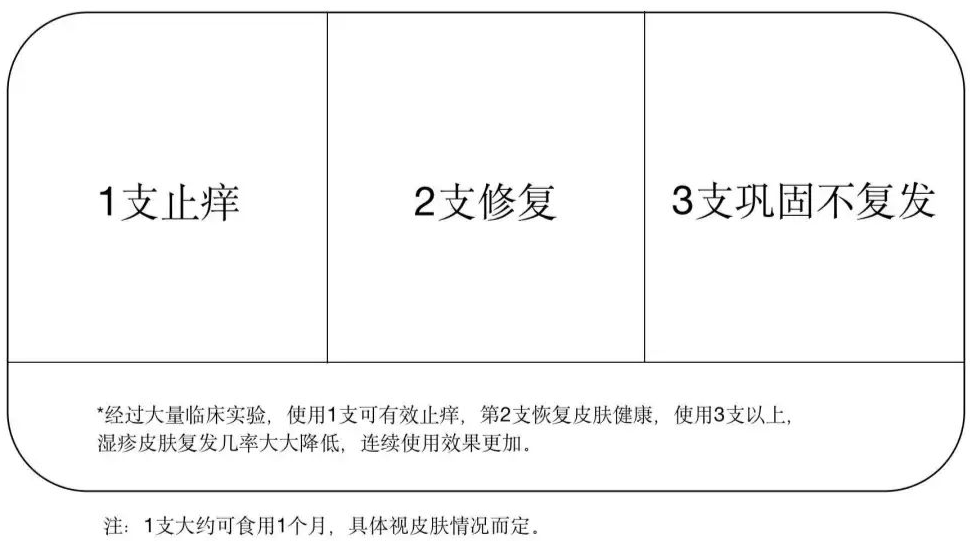 湿疹严重且反复发作的,早晚各用一次,从内而止痒修复,坚持使用1~2个月,皮肤屏障功能就能基本恢复,降低来年复发几率。