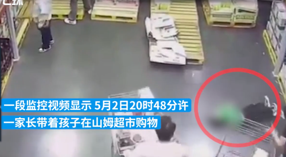 2023年5月2日20点48分时,一名女子带着一名小男孩在山姆超市购物,小男孩站立在购物车里,女子匆匆去拿取一排青绿色的饮料放进购物车,随即很快向后拉动购物车,而此时站在购物车上的男孩因此后倒摔下,疑似出现昏迷状况。