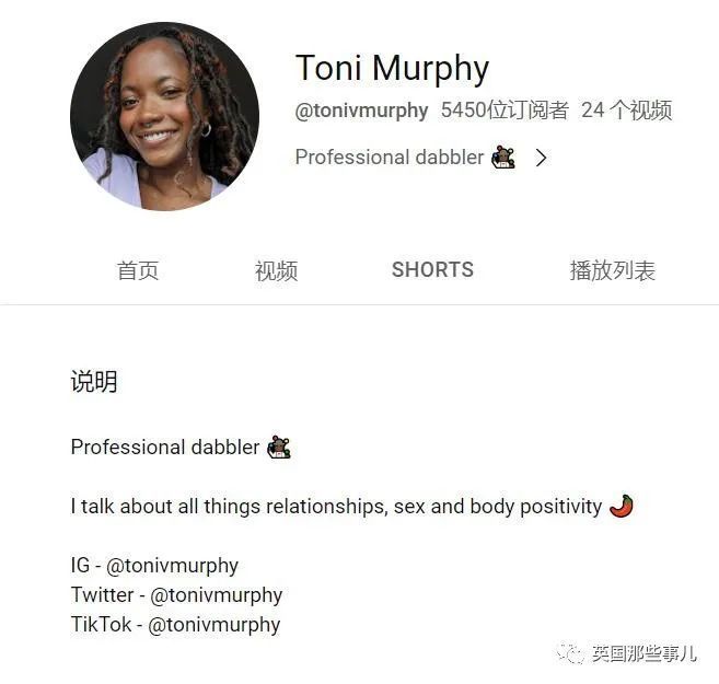 她的频道简介中写道:“我会聊一些跟两性关系、性和身体积极性有关的话题。”