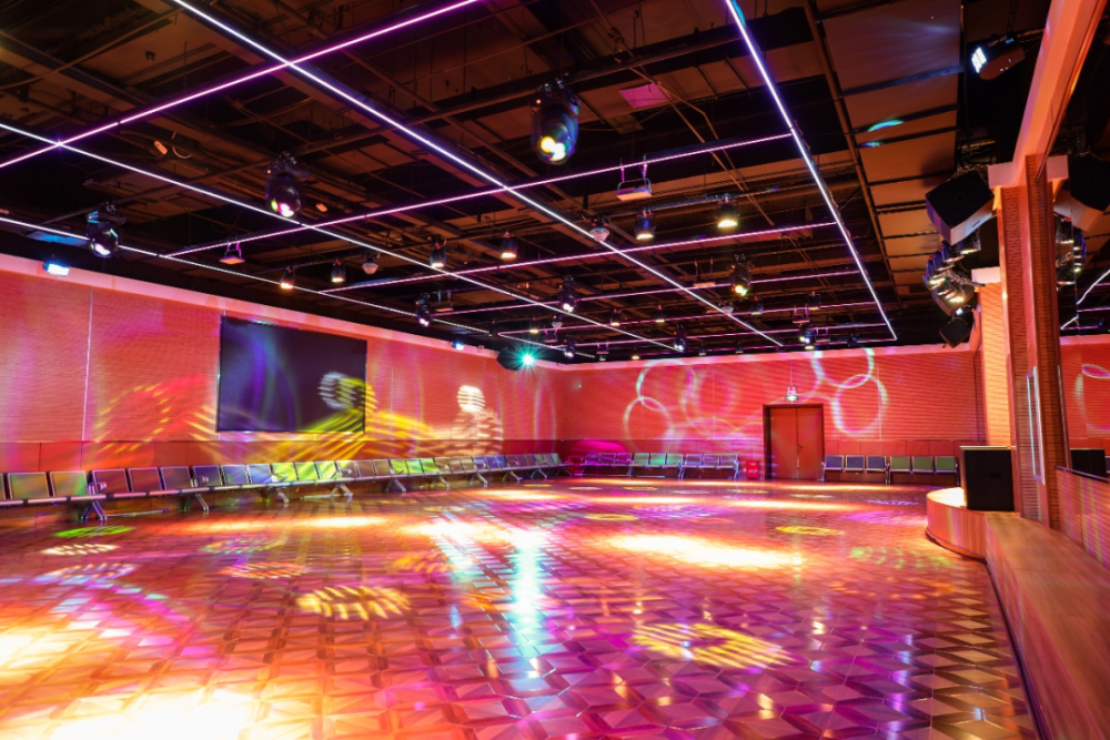 面积620平方米,拥有三个舞蹈教室,舞蹈一教单场活动可容纳200人,配备先进的灯光、音响系统,常年开设各类舞蹈培训,同时面向全市企事业单位提供舞蹈排练、舞蹈赛事、团体舞会等场地服务。